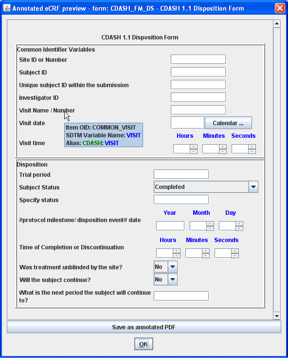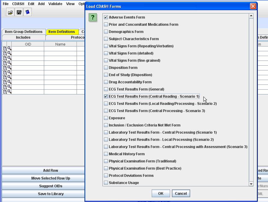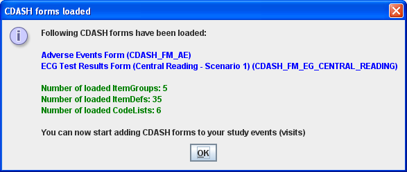 Release 2009-R1 has full support for CDASH forms. With a few mouseclicks only, selected CDASH forms can be added to the study design. The loaded CDASH forms can then still be tailored to the requirements of the current study.